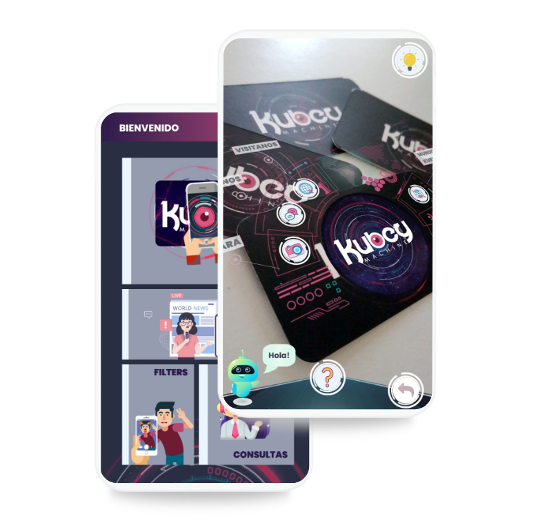 Creamos aplicaciones de RA para marcas o productos con un branding totalmente personalizado en Android / iOS y con las funcionalidades de Escáner, Geolocalización de contenido RA y Filtros temáticos.